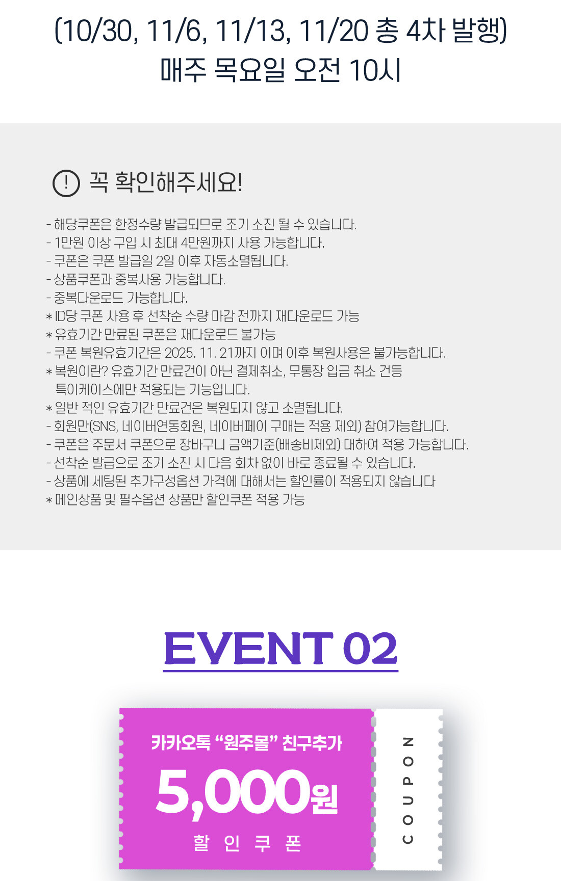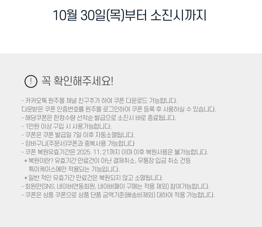 고객님들의 많은 성원과 관심으로 카카오톡 채널 추가 쿠폰이 모두 소진되었습니다.