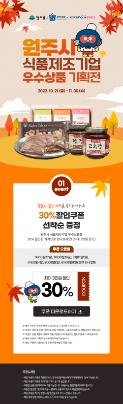 원주시 식품제조기업 우수상품 기획전 30% 할인 이벤트